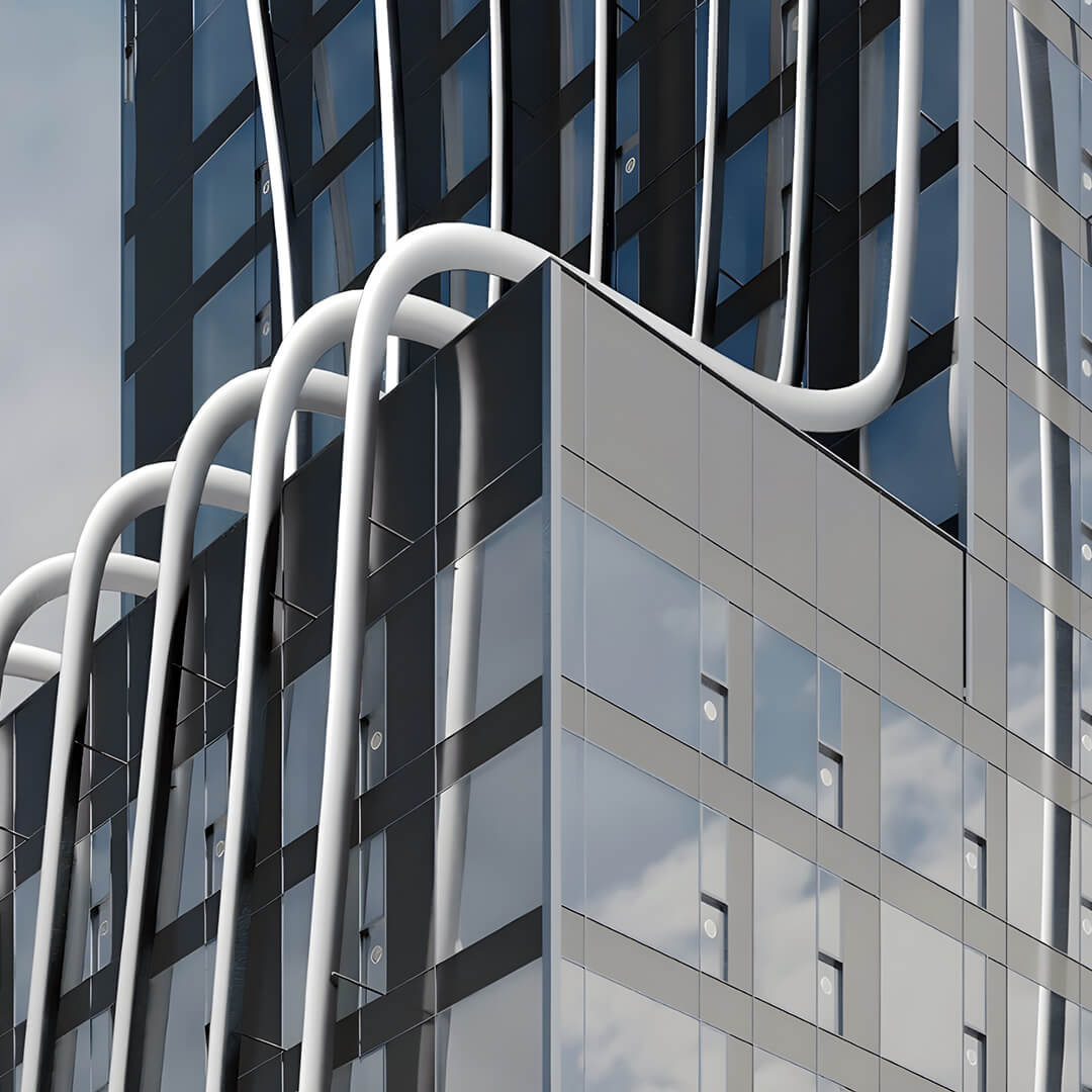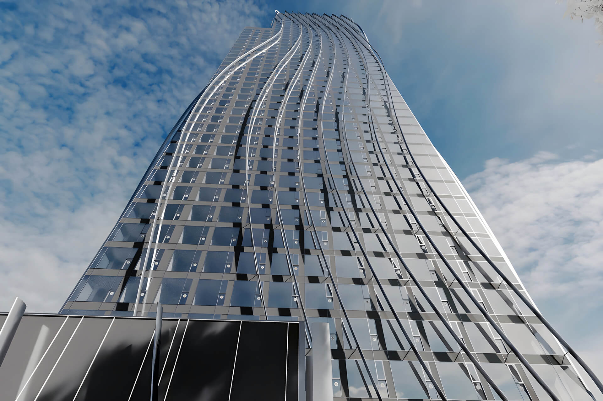 THE LOT by Akvilon — 44-этажный жилой комплекс бизнес-класса, который становится новой архитектурной доминантой Даниловского района Москвы. Башня с выразительным силуэтом, спроектированная бюро APEX, выделяется динамичными декоративными лентами из анодированного алюминия, создающими ощущение лёгкости и движения. Одноэтажный стилобат с общественными пространствами, современным лобби и сервисами подчёркивает премиальный характер комплекса, а трёхуровневая подземная парковка обеспечивает комфорт автомобилистам.